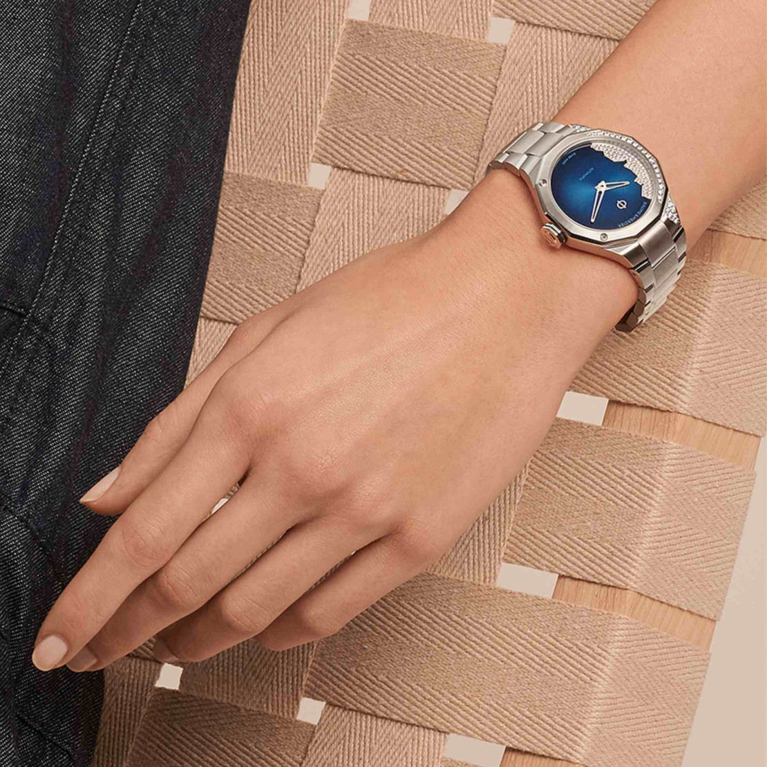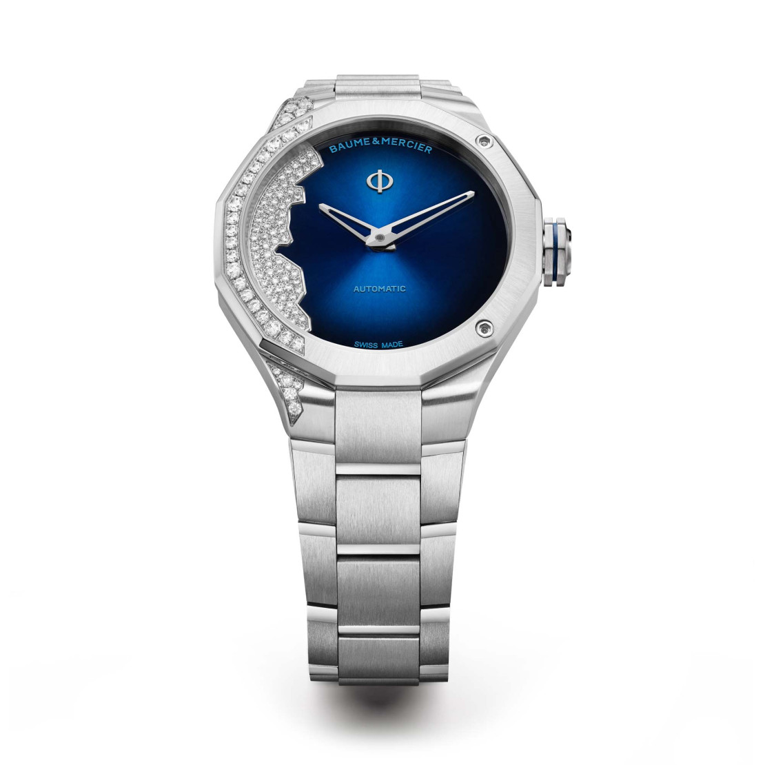 Ref. M0A10677 - Die Riviera vergisst die Frauen nicht. Ganz im Gegenteil. 2022 wird die Damenkollektion um mehrere Varianten ergänzt, darunter das automatische Swiss-Made-Modell „Coastline“ mit einem Durchmesser von 33 mm. In ihrem stählernen Gewand zeigt diese Riviera völlig ungeniert ein einzigartiges Design mit einem lackierten nachtblauen Zifferblatt mit Farbverlauf, besetzt mit 63 Diamanten, deren Anordnung an die Küstenlinie der französischen Riviera zwischen Monaco und Saint-Tropez erinnert. Das Ungleichgewicht, das durch diesen topografisch anmutenden Diamantenbesatz mit Edelsteinen in sieben verschiedenen Größen entsteht, ist eine Premiere für die Kollektion Riviera – und für die Maison, die mit dem Mut, für den sie international bekannt ist, wieder einmal an Designgrenzen rüttelt. Wie eine Welle im Sommer zieht sich der exklusive Besatz teilweise über die Lünette, das Gehäuse und das integrierte Stahlarmband. Furchtlos zeigt sie sich von einer unerwarteten Seite. Das ist die Essenz der Riviera.Das Wichtigste