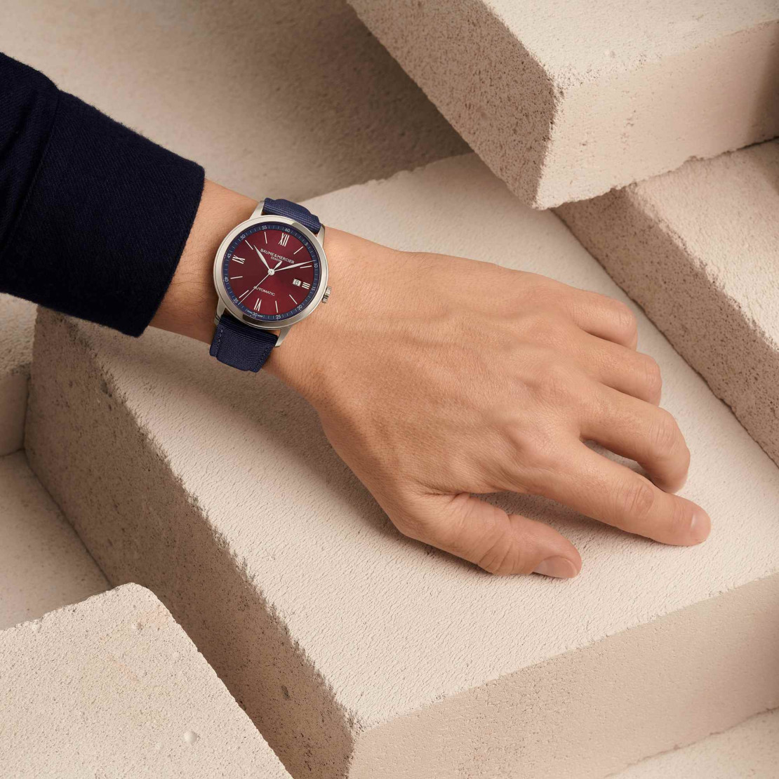 Ref. M0A10694 - Beim Herrenmodell präsentiert sich der City-Look im XL-Format mit einem 42-mm-Gehäuse aus poliertem Edelstahl. Dieses beherbergt ein großes sonnengeschliffenes Zifferblatt in Bordeaux mit einem blauen Höhenring, welcher der Minuterie zusätzliches Relief verleiht. Die Minutenteilung unterstreicht die perfekt ausgewogene Kreisform. Drei rhodinierte Zeiger weisen voller Anmut auf weiße Indizes und römische Ziffern. Ein Datumsfenster prangt elegant bei der Drei. Das Automatikwerk mit 38 Stunden Gangreserve sitzt in einem Gehäuse mit geschlossenem Boden, der Raum für eine kreative, persönliche Gravur lässt. Das Band lässt sich durch ein Wechselsystem mit geraden Federstegen und Zapfen nach Belieben ohne Werkzeug austauschen.Das Wichtigste