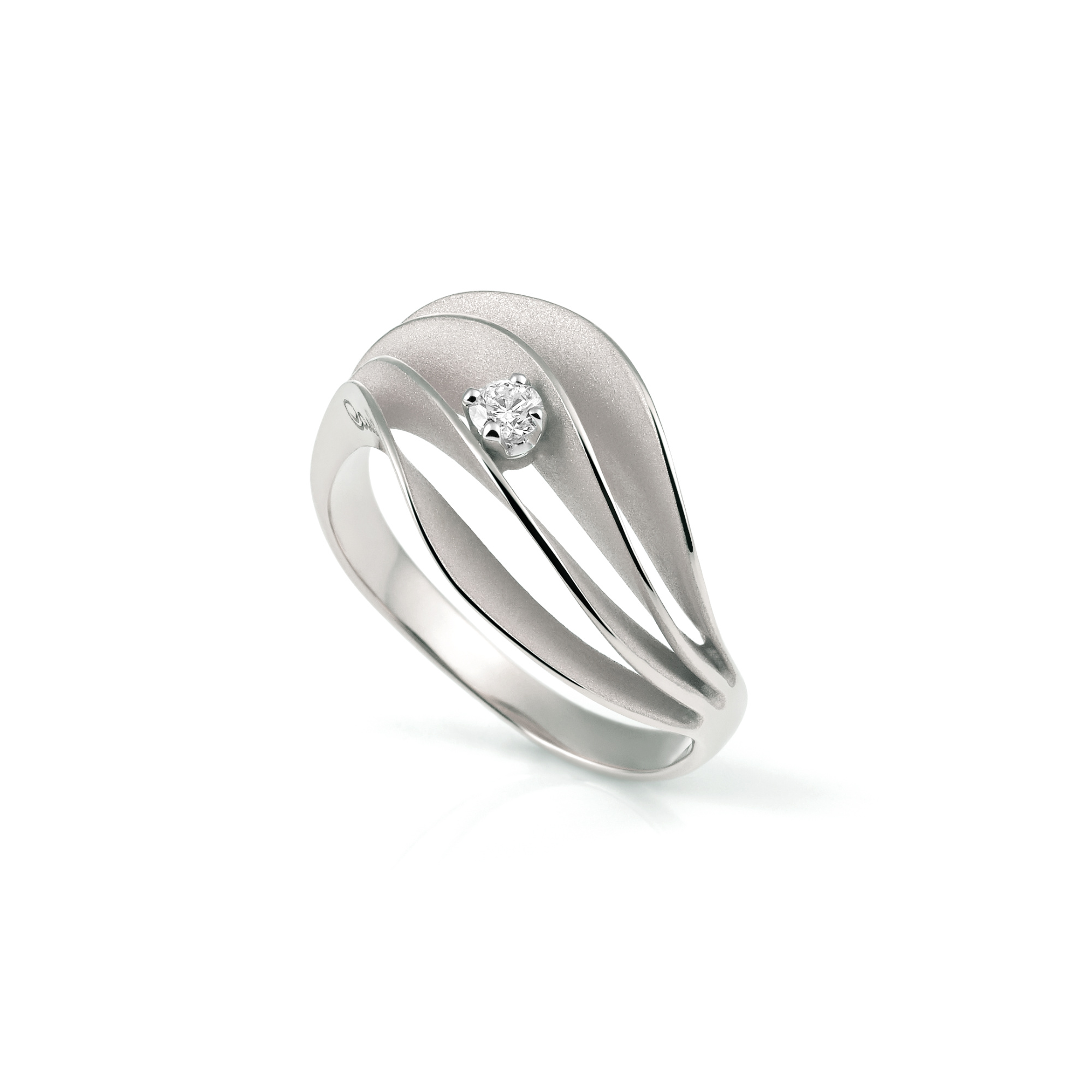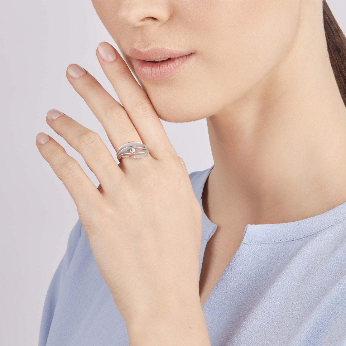 Ref. GAN3245W - Das einzigartige zeitgenössische Design von Cammilli verstärkt das skulpturale Volumen der Schmuckstücke, das die Edelsteine mit ihren ungewöhnlichen Bewegungen hervorheben. Die fließenden und essentiellen Formen wechseln sich mit seidigen Oberflächen einer unkonventionellen Ästhetik ab.Das Wichtigste