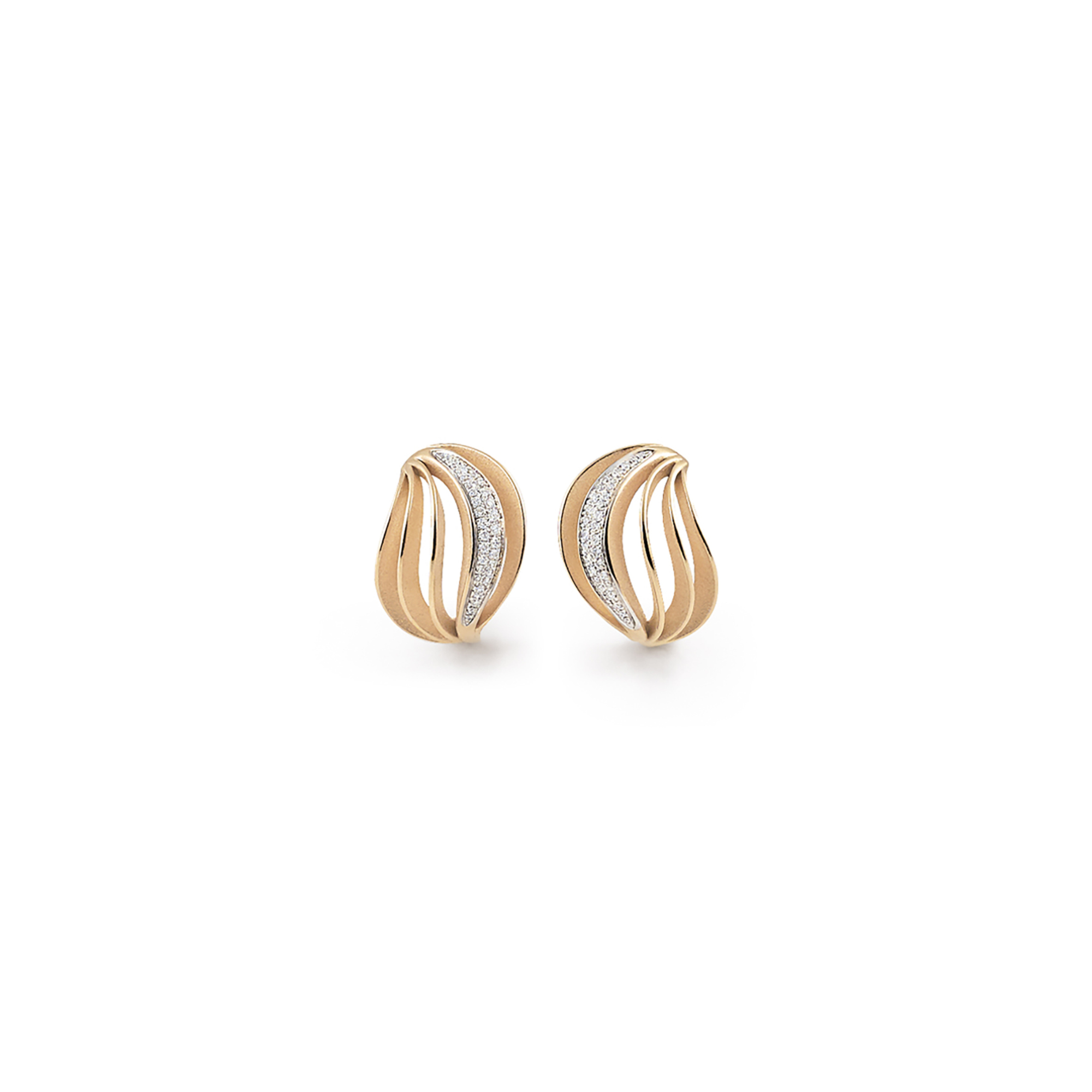 Ref. GOR3261J - Das ausgeprägten Volumen und die minimalen Formen, die für die Velaa Serie charakteristisch sind, treffen auf funkelnde Pavé-Linien, die in die Wellenbewegungen dieser Kreationen passen und sie noch wertvoller machen. Die markante Abwechslung von glänzenden und satinierten Oberflächen erhöht die Tiefe der Formen und erweckt ein schillerndes Spiel von Licht und Schatten zum Leben.