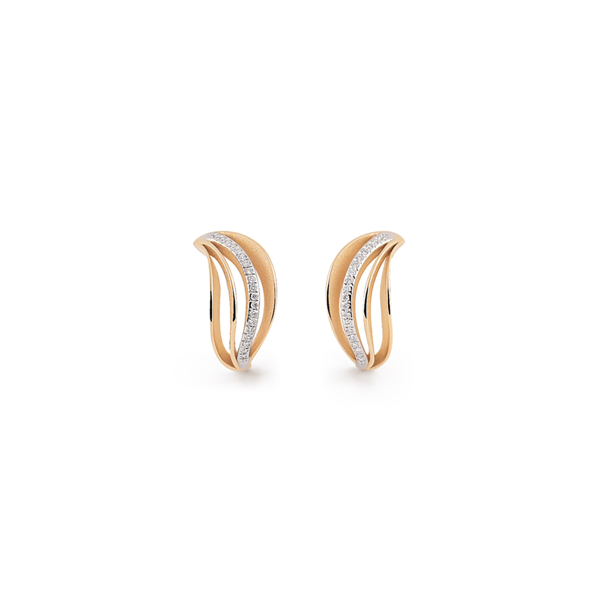 Ref. GOR3372J - Das ausgeprägte Volumen und die minimalen Formen der Velaa Kollektion werden mit hellen Diamantreihen bereichert, die dem wellenförmigen Profil der Schmuckstücke folgen und ihnen einen raffinierten Hauch von Licht verleihen. Die markante Abwechslung von glänzenden und samtigen Goldoberflächen erhöht die Tiefe der Formen und erweckt ein schillerndes Spiel von Licht und Schatten zum Leben.
