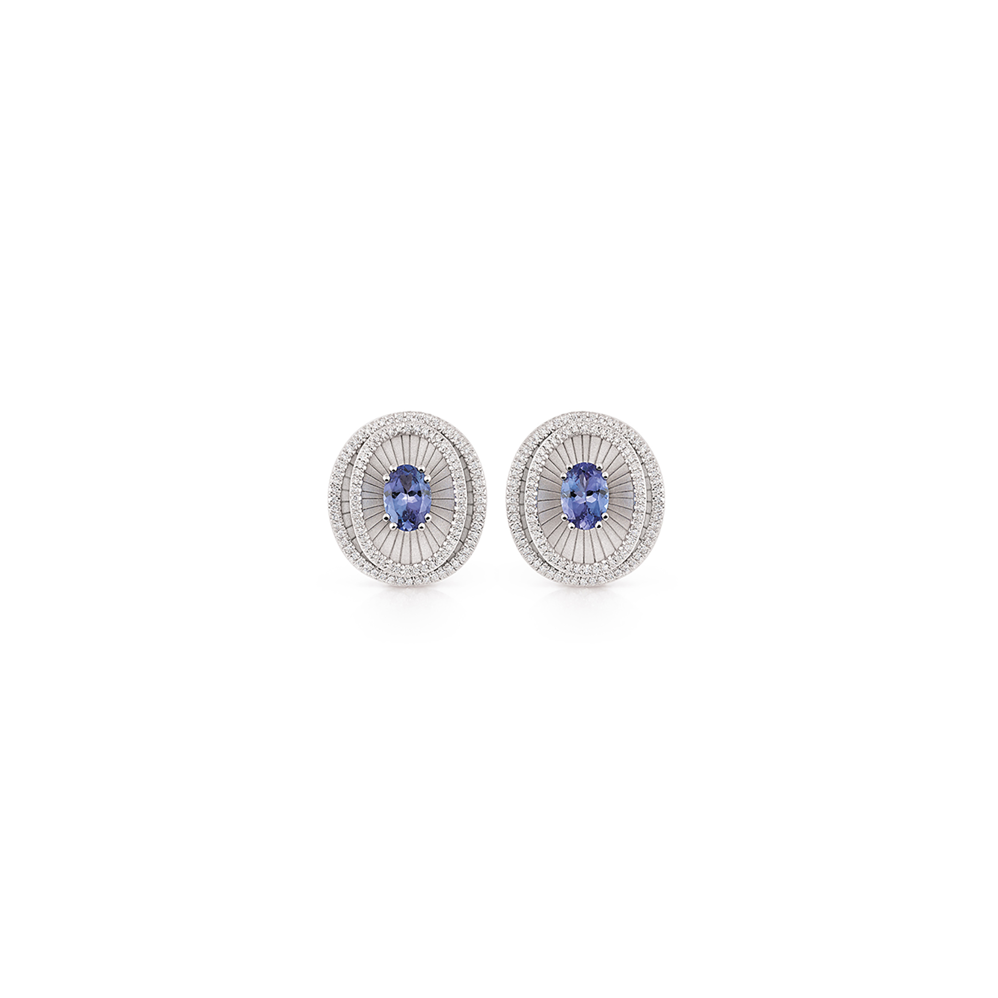 Ref. GOR3636WT13 - Cocoon fasziniert durch eine Überlagerung von Goldoberflächen, die den Schmuckstücken eine unerwartete Dreidimensionalität verleihen, und den Blick auf eine kostbare, farbenfrohe Tansanite oder Turmaline lenken. Ein zentraler Stein, der zum Staunen geboren wurde und zwischen den mit Diamanten gekrönten geschwungenen Kurven zum Vorschein kommt.