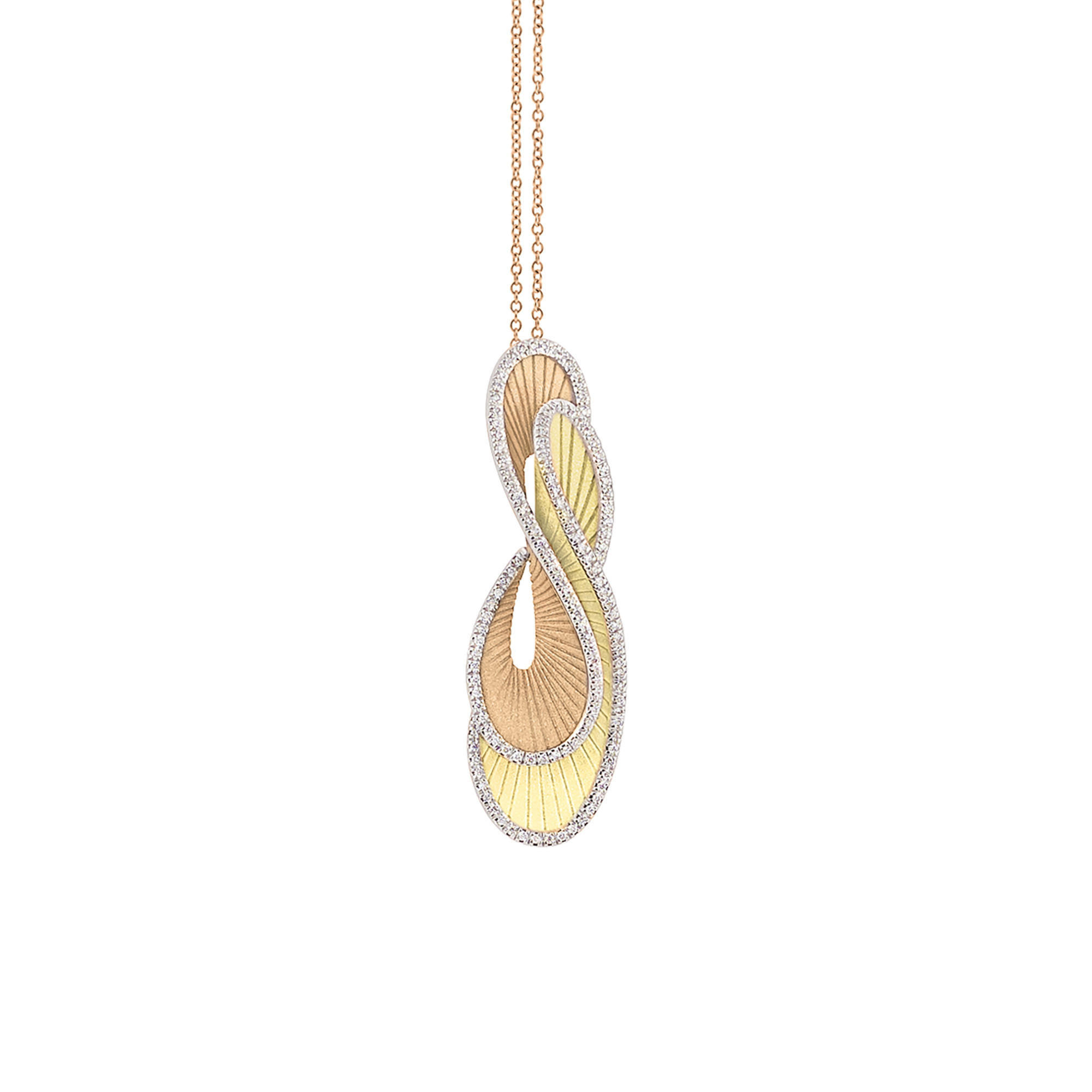 Ref. GPE3138R - Inspiriert von den gewundenen Bewegungen des Wassers zeichnet sich die Serie Regina durch ihre königliche Eleganz aus. Einzigartige Farben und eine außergewöhnliche Dreidimensionalität, die mit der alten Technik des Wachsausschmelzens erzielt wurde, machen diese Stücke unverkennbar.
