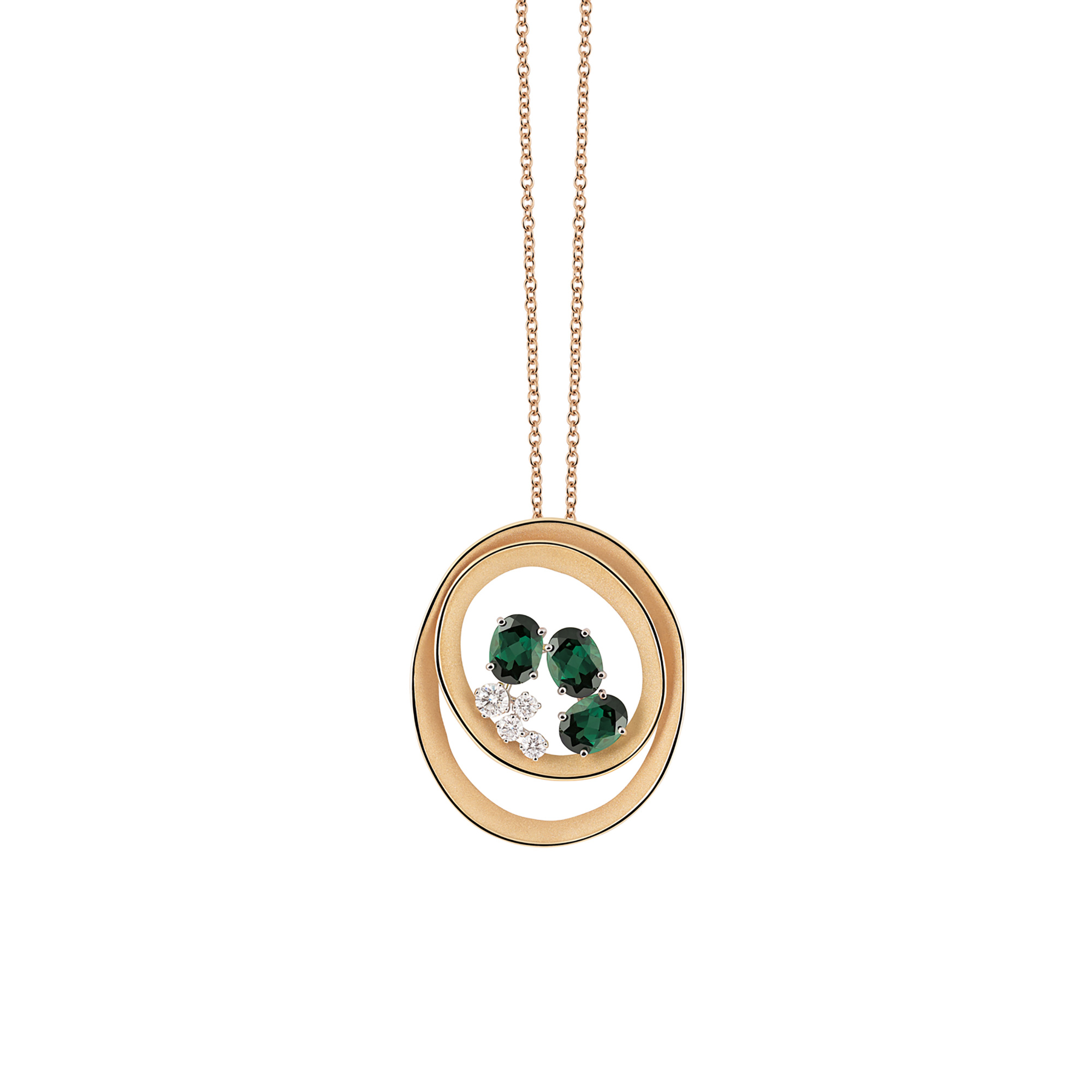Ref. GPE3389JT12 - Dune Solar Color kombiniert das ikonische Design von Dune Solar mit den kräftigen Farben hochwertiger Edelsteine und Halbedelsteine. Verschiedene Schattierungen von Turmalinen, das tiefe Blau der Tansanite, das leuchtende Grün des Peridots, das Rosa des Rhodoliths und das helle Blau des Aquamarins ergeben eine einzigartige Farbsymphonie, die perfekt zu den verschiedenen Schattierungen von Cammilli-Gold passt.