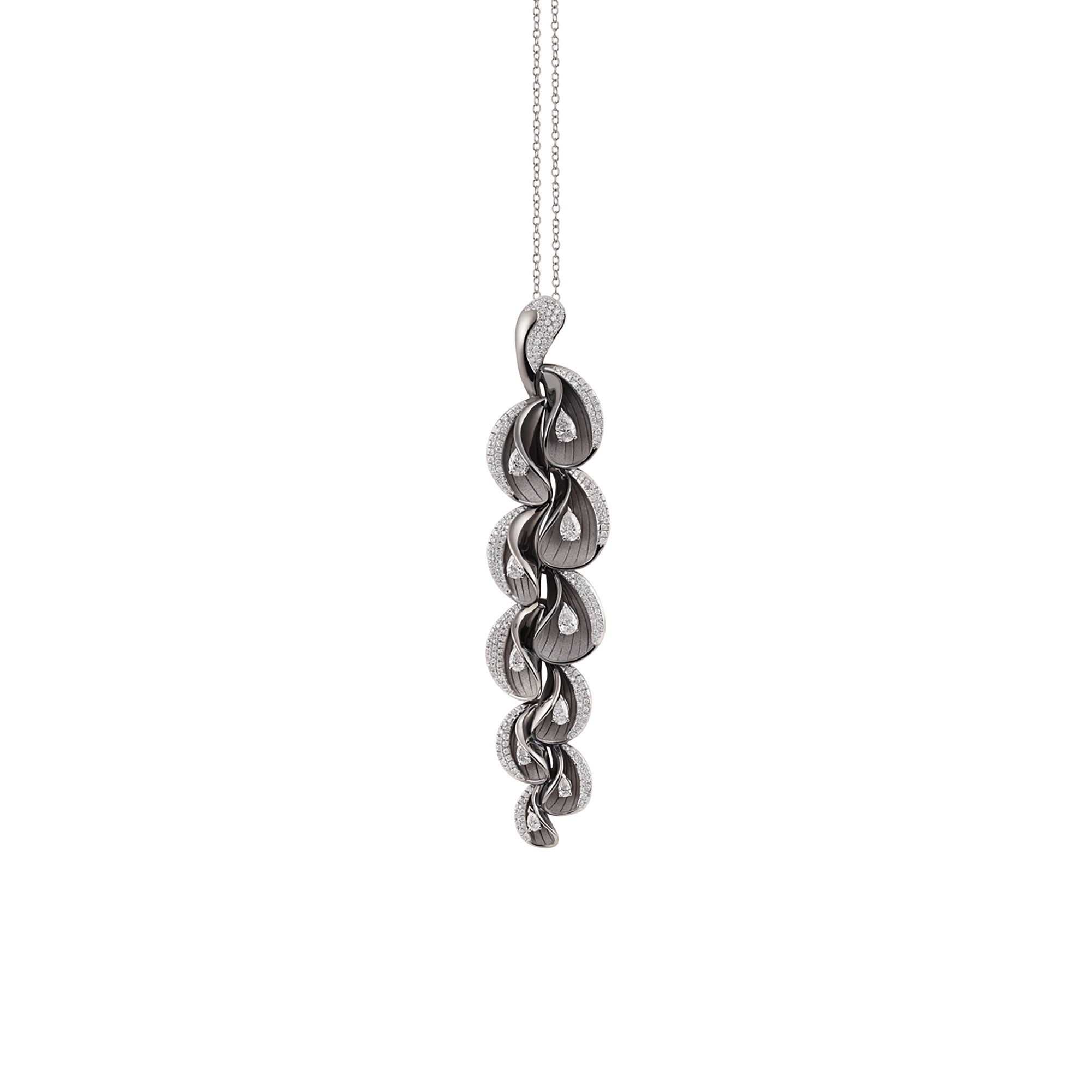 Ref. GPE3489ET40 - Moon Drops entsteht aus der perfekten Umarmung zwischen weichen Goldtropfen, die von einem Rand aus Diamantpavé beleuchtet werden, der an die umhüllende Form des Mondes erinnert. In der Mitte jedes Elements macht ein Stein im Tropfenschliff, der in der Version mit weißem, Fancy Color Diamant oder blauen Saphiren erhältlich ist, jede Kreation noch prächtiger.
