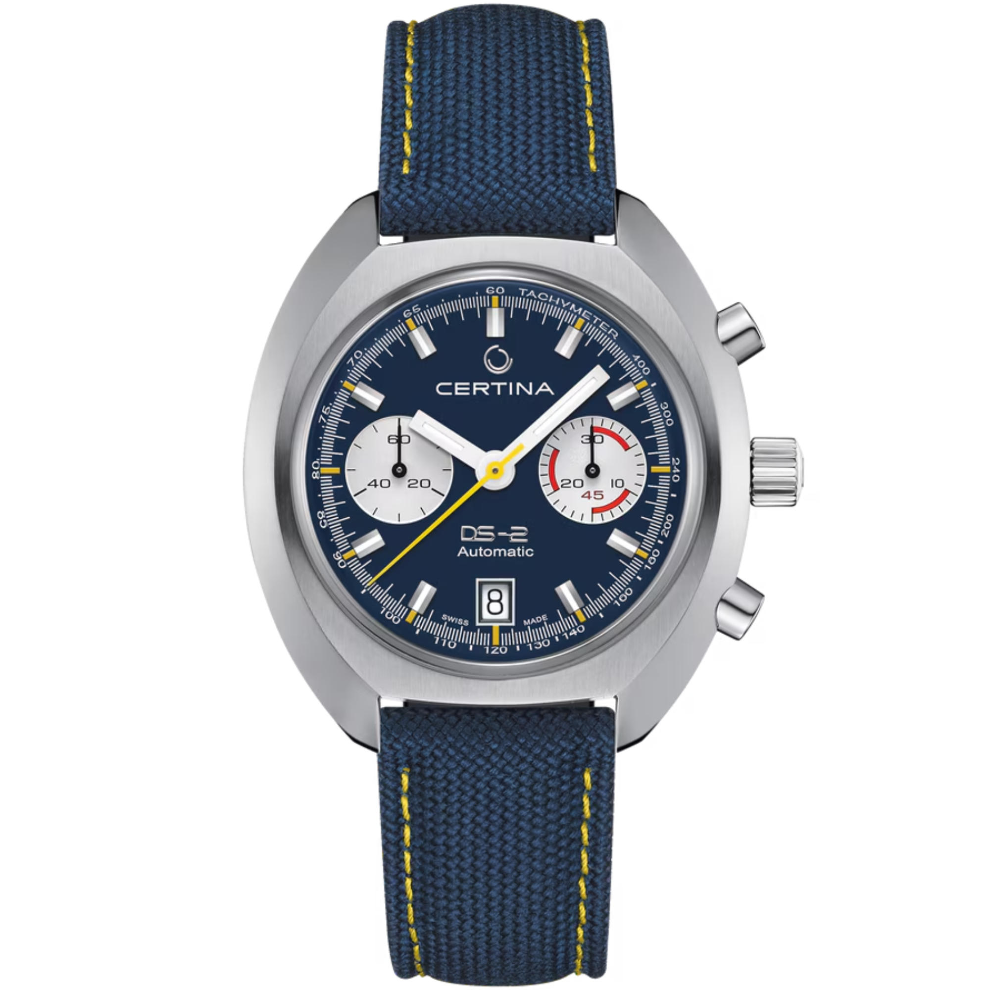 Ref. C024.462.18.041.00 - Der neue Chronograph von Certina ist von einem Zeitmesser inspiriert, der auf dem Höhepunkt seiner Zeit stand - im wahrsten Sinne des Wortes! Der Vorgänger des DS-2 Chronograph Automatic stellte seine Qualitäten bei einer spektakulären Expedition zum Mount Everest unter Beweis. Das neue Modell transportiert diesen Abenteuergeist ins 21. Jahrhundert, mit einem sportlich-eleganten Vintage-Design und Siliziumtechnologie. Auf diese Weise wird das traditionelle Savoir-faire stilvoll in die nächste Generation überführt.Das Wichtigste