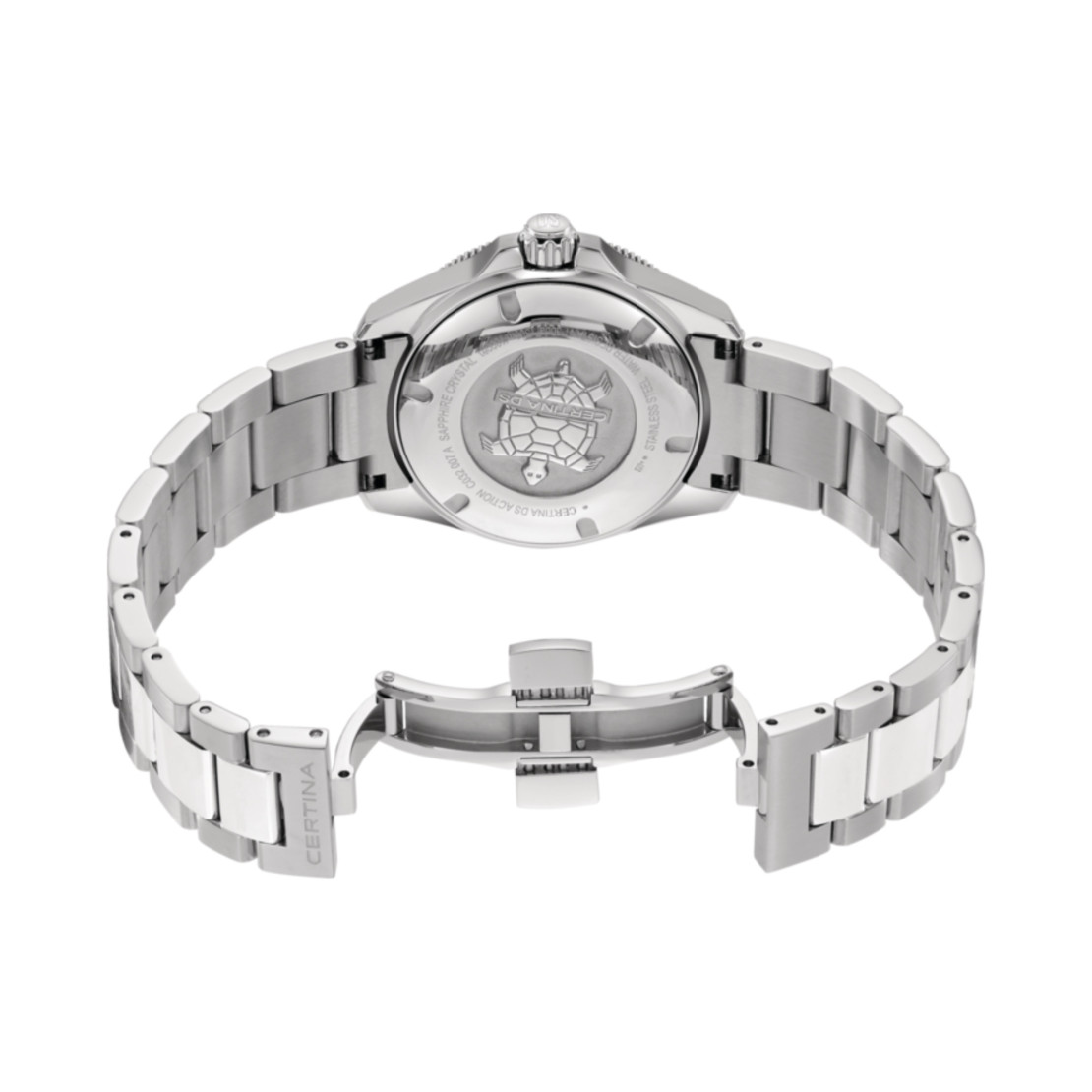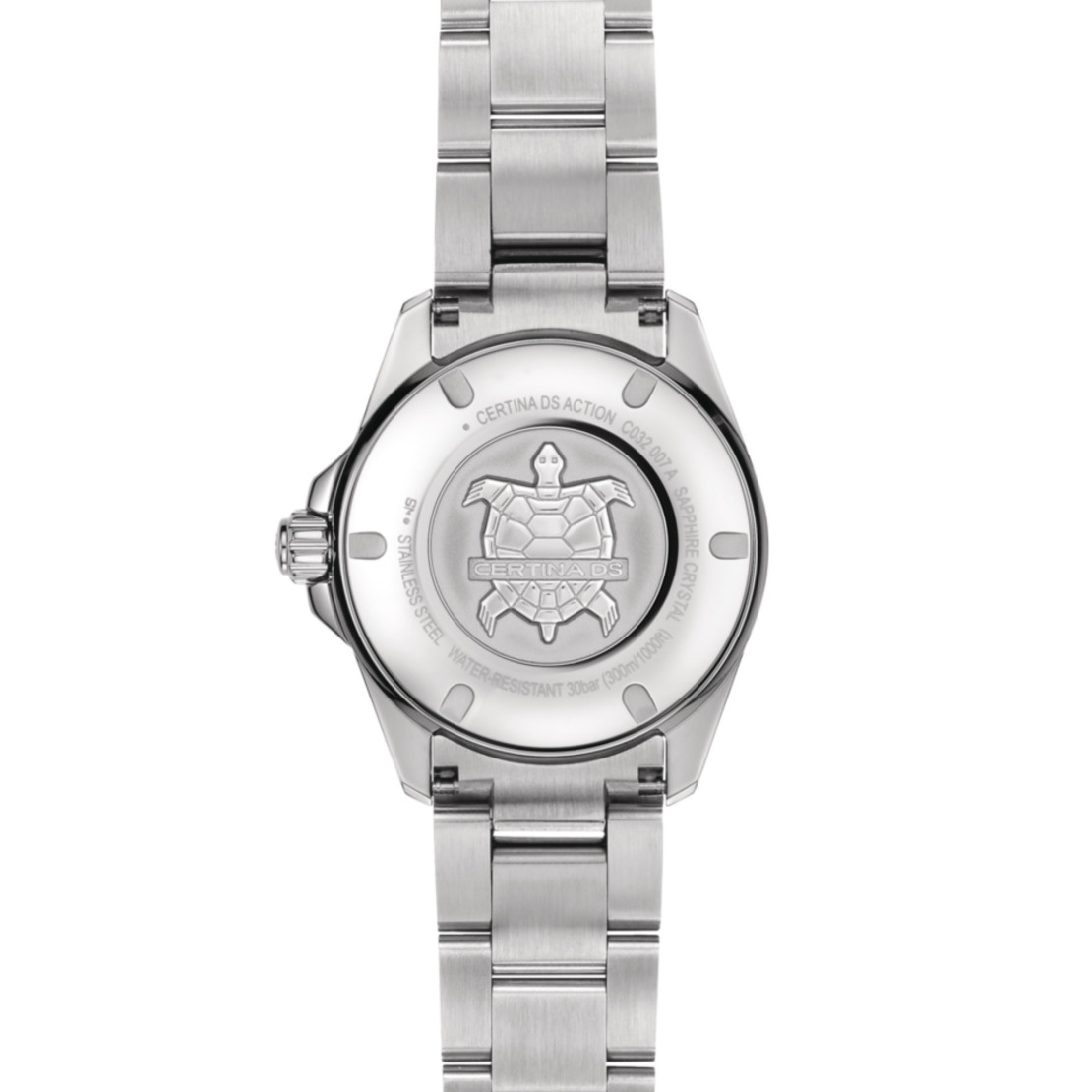 Ref. C032.007.11.011.00 - Das Meer ist immer in Bewegung – genau wie das Leben. Die DS Action 34.5 mm erweist sich als idealer Begleiter im modernen Alltag, egal ob Sie sich gerne treiben lassen oder lieber gegen den Strom schwimmen. Ihr graziler Durchmesser von 34.5 mm macht die sportlich-elegante Armbanduhr auch am schmalen Handgelenk äusserst tragbar.Das Wichtigste