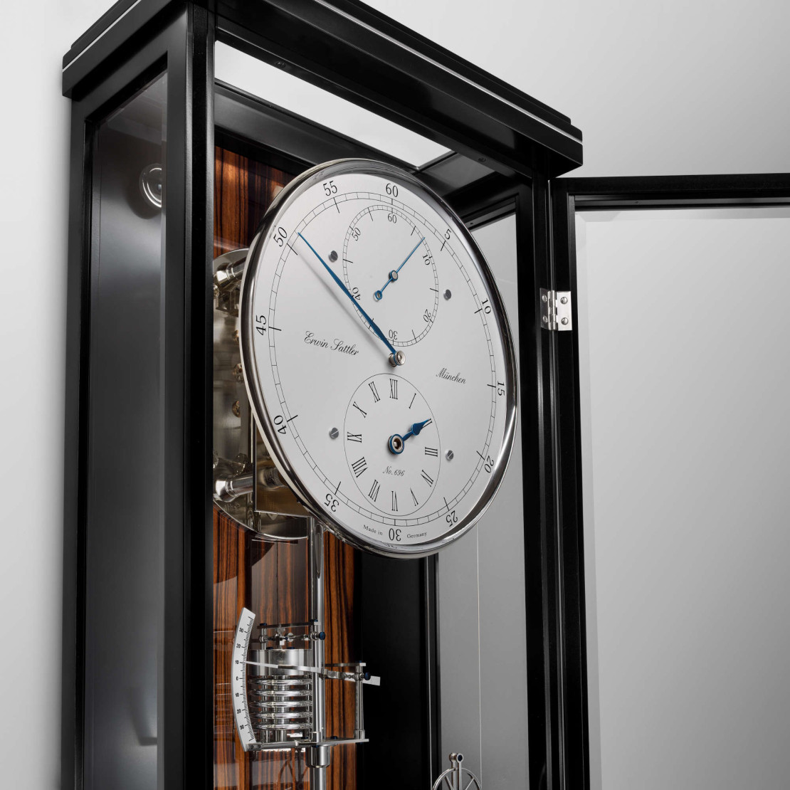 Die Weiterentwicklung der über 600 Mal gefertigten Präzisionsuhr 1935 verschönert Büros, Eingangsbereiche und Wohnräume. Ihr klassisches Design mit modernem Gehäuse in Verbindung mit dem technischen Anspruch der Uhrenmanufaktur Erwin Sattler macht das Modell Classica Secunda 1985 M zu einem vielseitigen Wohnaccessoire.