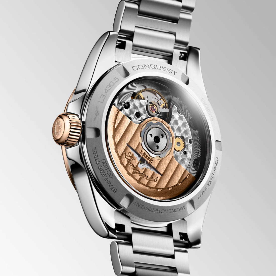 Ref. L3.430.5.87.6 - Die Conquest, die ultimative Uhr für jeden Tag, war auch die erste LONGINES Kollektion, deren Name 1954 durch das Eidgenössische Institut für Geistiges Eigentum geschützt wurde. Seitdem hat sich die Kollektion durch Design und Technologie weiterentwickelt, ist aber ihrer ursprünglichen Identität treu geblieben und strahlt eine harmonische Mischung aus Kühnheit, zeitgenössischem Design und sportlicher Eleganz aus. Jede Conquest Uhr zeigt das unermüdliche Engagement von LONGINES für Leistung und uhrmacherische Exzellenz. Mit ihrem vielseitigen Angebot steht die Reihe Conquest für das Engagement von LONGINES, Uhren für jede Facette des Lebens zu kreieren. Die Kollektion ist in einer Reihe von Größen, Materialien und Farben erhältlich.Das Wichtigste