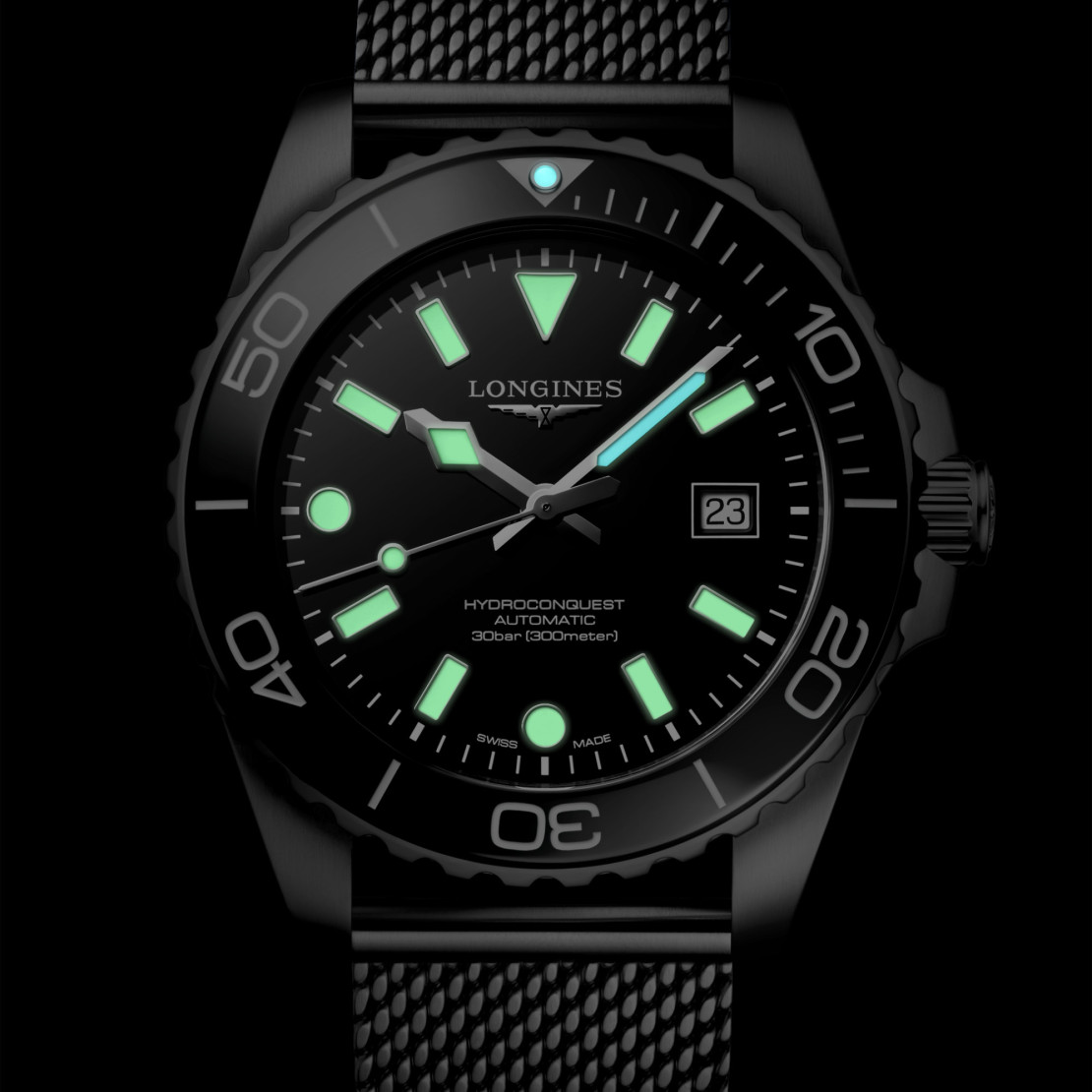 Ref. L3.788.4.70.6 - Durch die Verbindung einer modernen Ästhetik mit nachweislicher Leistung lässt sich die HydroConquest von maritimen Abenteuern inspirieren und bleibt zeitlosen Designprinzipien treu. Sie bietet sportliche Zeitmesser, die mühelos von aktiven Unternehmungen zu eleganten Anlässen übergehen.