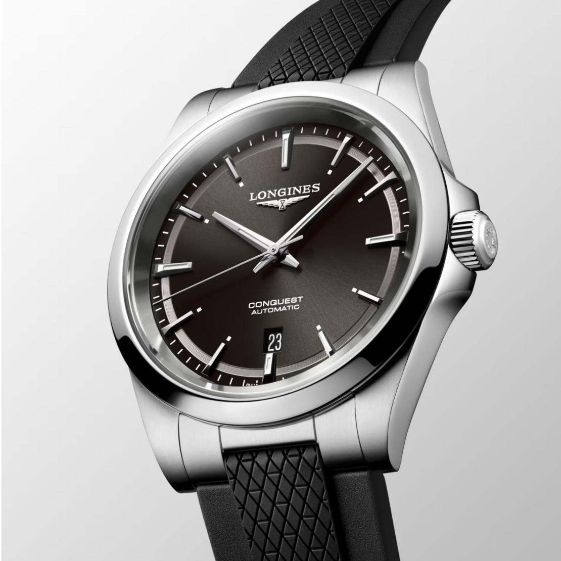 Ref. L3.830.4.52.9 - Die Conquest, die ultimative Uhr für jeden Tag, war auch die erste LONGINES Kollektion, deren Name 1954 durch das Eidgenössische Institut für Geistiges Eigentum geschützt wurde. Seitdem hat sich die Kollektion durch Design und Technologie weiterentwickelt, ist aber ihrer ursprünglichen Identität treu geblieben und strahlt eine harmonische Mischung aus Kühnheit, zeitgenössischem Design und sportlicher Eleganz aus. Jede Conquest Uhr zeigt das unermüdliche Engagement von LONGINES für Leistung und uhrmacherische Exzellenz. Mit ihrem vielseitigen Angebot steht die Reihe Conquest für das Engagement von LONGINES, Uhren für jede Facette des Lebens zu kreieren. Die Kollektion ist in einer Reihe von Größen, Materialien und Farben erhältlich.Das Wichtigste