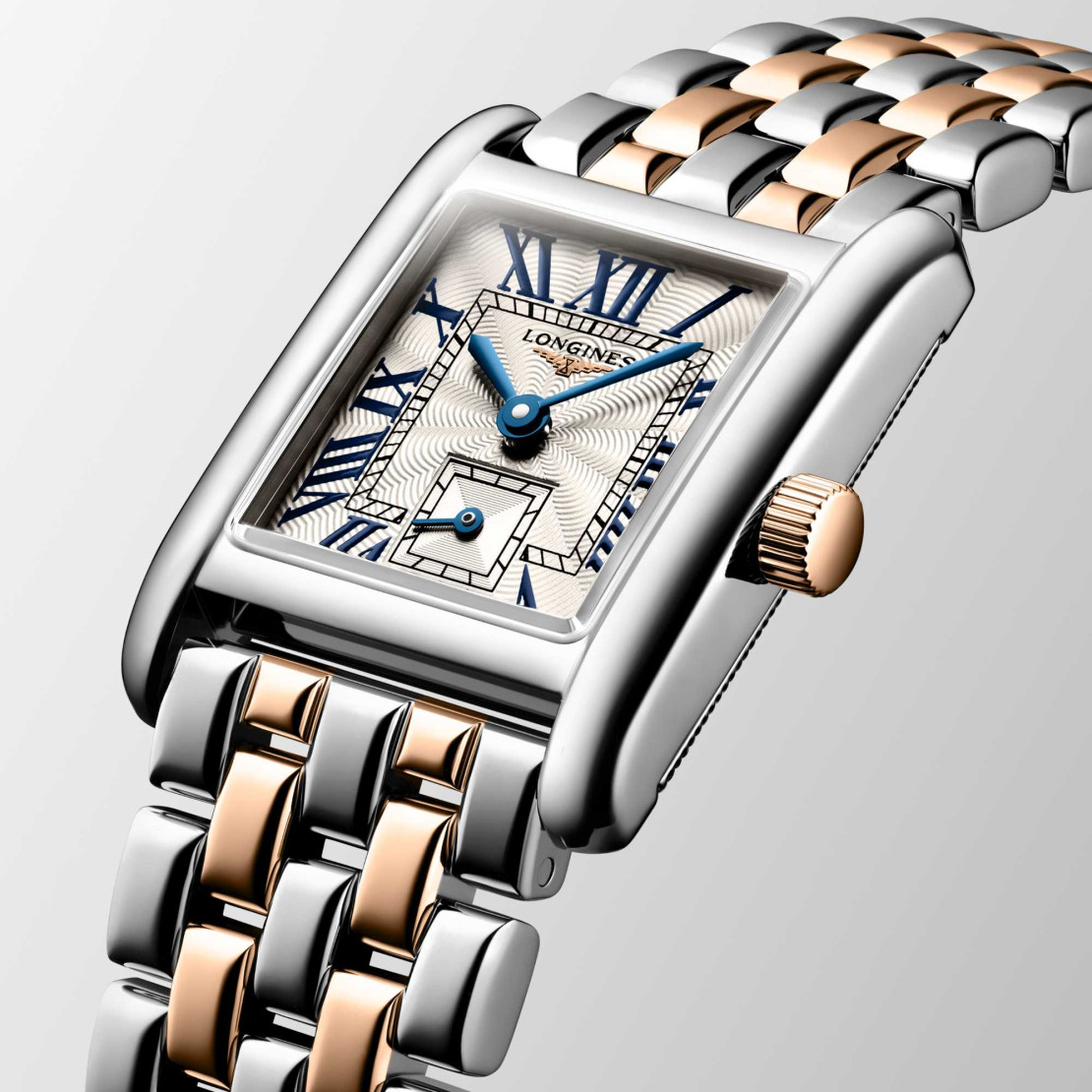 Ref. L5.200.5.71.7 - Mit ihrem diskreten Profil, dem klassischen Design und den ästhetischen Variationen, die zugleich zeitgemäß und zeitlos sind, ist die Mini DolceVita ein Meisterwerk, das den stillen Luxus und die zeitgenössische Eleganz von LONGINES gleichermaßen perfekt zum Ausdruck bringt. Die sorgfältig gestaltete Kollektion ist eine Erweiterung der ursprünglichen DolceVita Familie, inspiriert von einer LONGINES Legende aus dem Jahr 1927. Die Mini DolceVita Uhren sind in einer beeindruckenden Auswahl an Materialien und Farben erhältlich. Sie haben ein diskretes Gehäuse von 21,50 mm x 29 mm und sind mit oder ohne Diamanten erhältlich.
