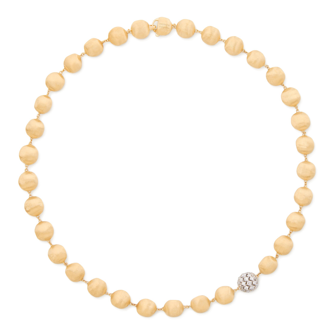 Ref. CB2911 B2 YW - Eine raffinierte Abfolge von Kugeln aus Gold, die jeweils fein von Hand mit der antiken Fadenstichel-Technik graviert wurden, verleiht dieser Halskette ihren unverwechselbaren Charakter. Um das Design wirklich einzigartig zu machen, fängt eine Kugel mit Diamantpavé in Brillantschliff bei jeder Bewegung das Licht ein und macht diese Halskette zu einem perfekten Accessoire für den Alltag.