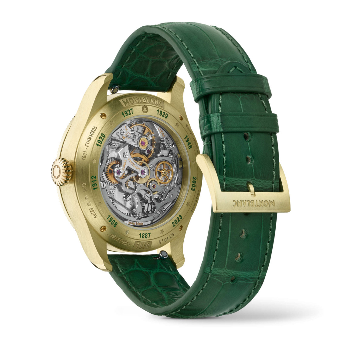 Die Uhr verfügt über ein 42,5-mm-Grüngoldgehäuse mit einem dunkelgrünen Zifferblatt und einem austauschbaren Armband aus grünem Alligatorleder. Angetrieben wird die auf 28 Exemplare limitierte Uhr vom handfinissierten Handaufzugskaliber M13.21.