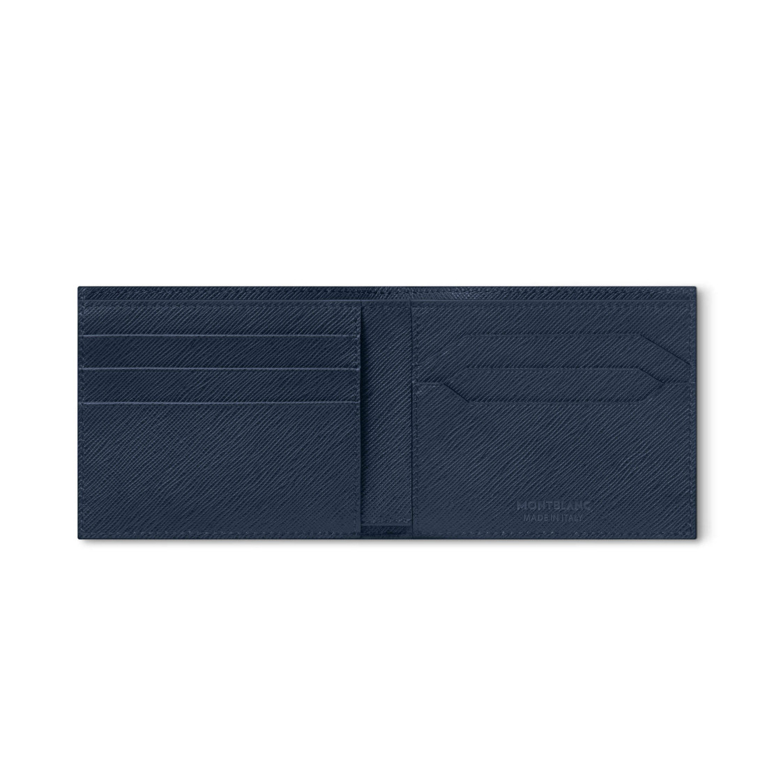 Ref. MB131721 - Ein Must-have, das problemlos in die meisten Taschen passt. Diese Brieftasche aus Leder in Ink Blue mit Saffianlederprägung bietet Schlitze für bis zu sechs Kreditkarten. Darüber hinaus ist sie mit zwei Geldscheinfächern und zwei Extrafächern für kleine Gegenstände versehen.Das Wichtigste