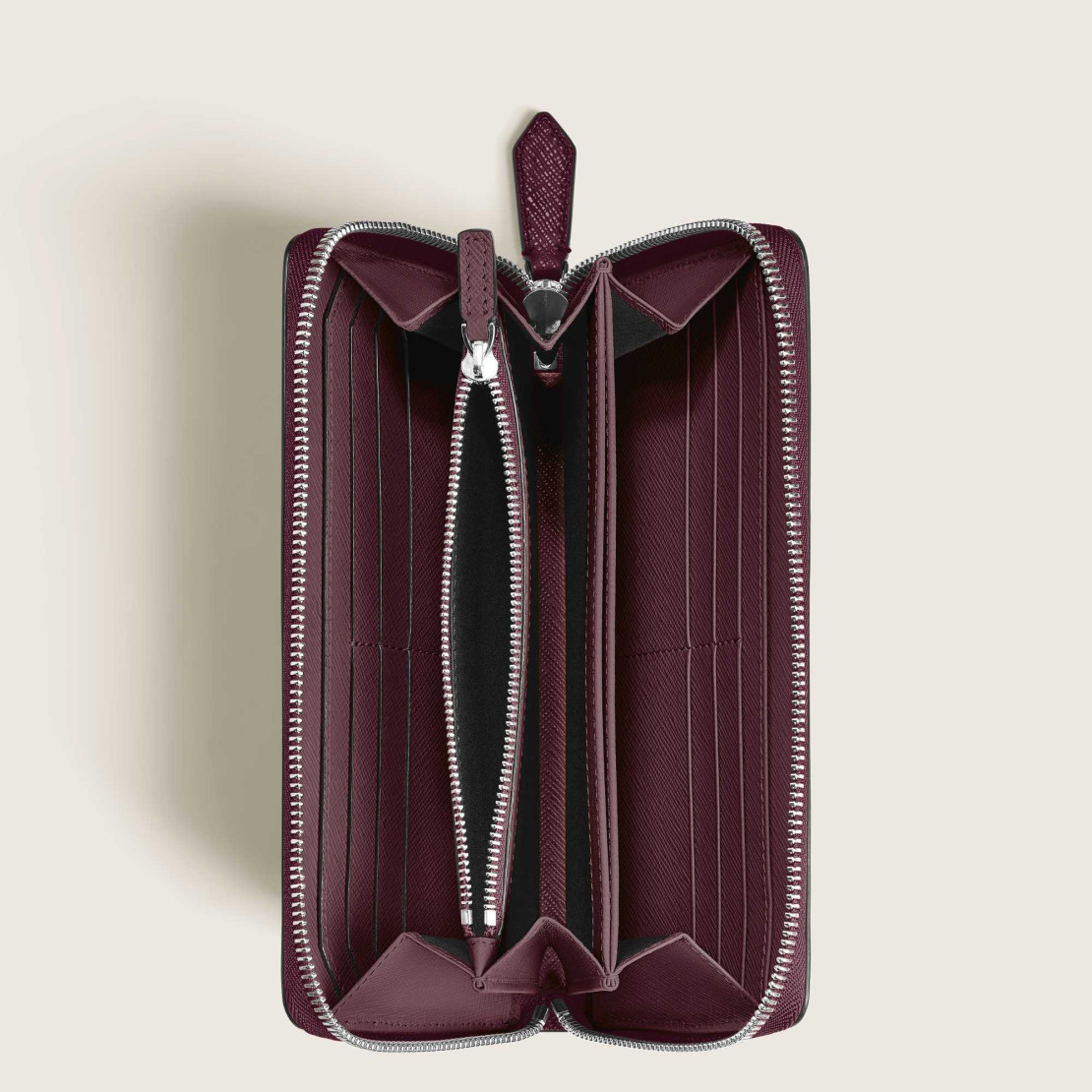 Ref. MB199372 - Diese Brieftasche aus Leder in Cassis mit Saffianlederprägung ist ein vielseitiger Begleiter mit vielen funktionalen Details. Neben Fächern für bis zu 12 Kreditkarten bietet sie drei Geldscheinfächer, ein Münzfach mit Reißverschluss sowie drei Extrafächer für kleinere Wertsachen.Das Wichtigste