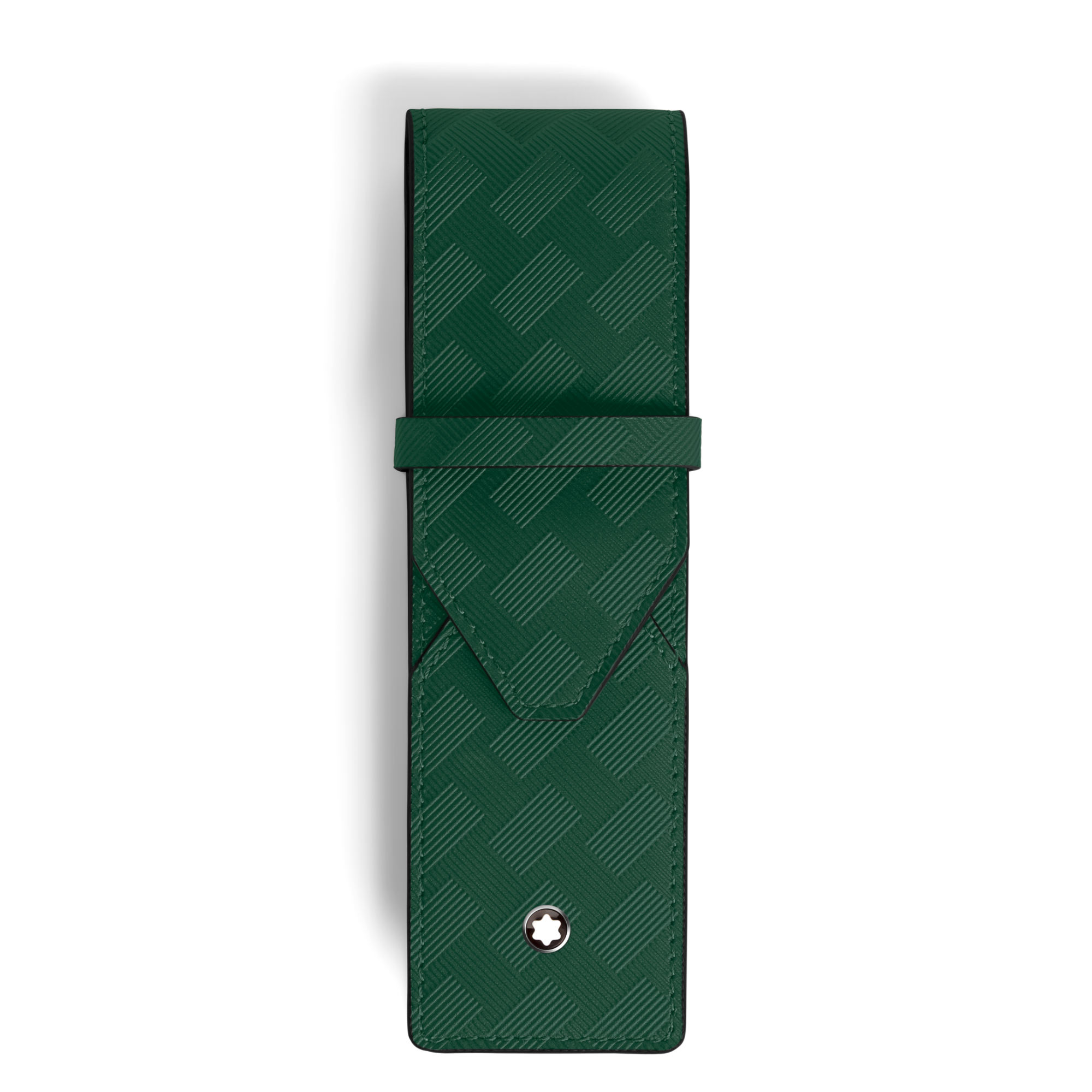 Ref. MB220015 - Als alltäglicher Begleiter für Berufstätige und Liebhaber von geschriebenen Worten bietet dieses elegante Schreibgeräteetui aus Leder in British Green Platz für zwei Schreibgeräte. Die Silhouette der Kreation bezaubert durch zwei überlappende Formen, die an einen Briefumschlag erinnern, während das geprägte Extreme 3.0 Motiv ihr eine unverwechselbare Note verleiht.Das Wichtigste