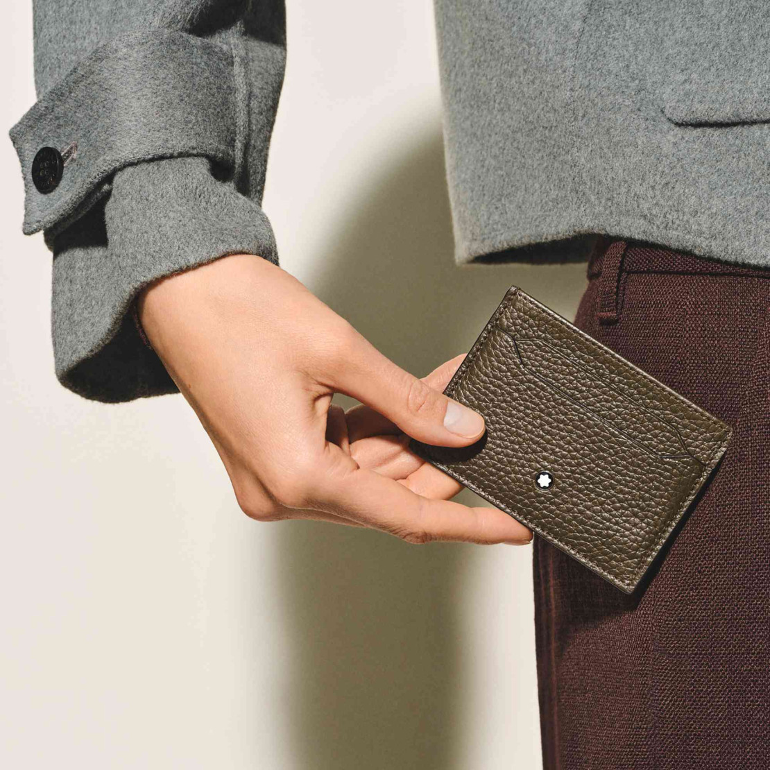 Ref. MB220219 - Diese Kartenetui aus hochwertigem, weichem Kalbsleder in Khaki verleiht Ihren Essentials einen Hauch von Stil. Mit Platz für bis zu fünf Kreditkarten bietet es eine elegante und praktische Lösung für die Organisation unterwegs. Es ist mit dem charakteristischen Montblanc Emblem auf der Vorderseite versehen und vereint damit Funktionalität mit Eleganz.Das Wichtigste