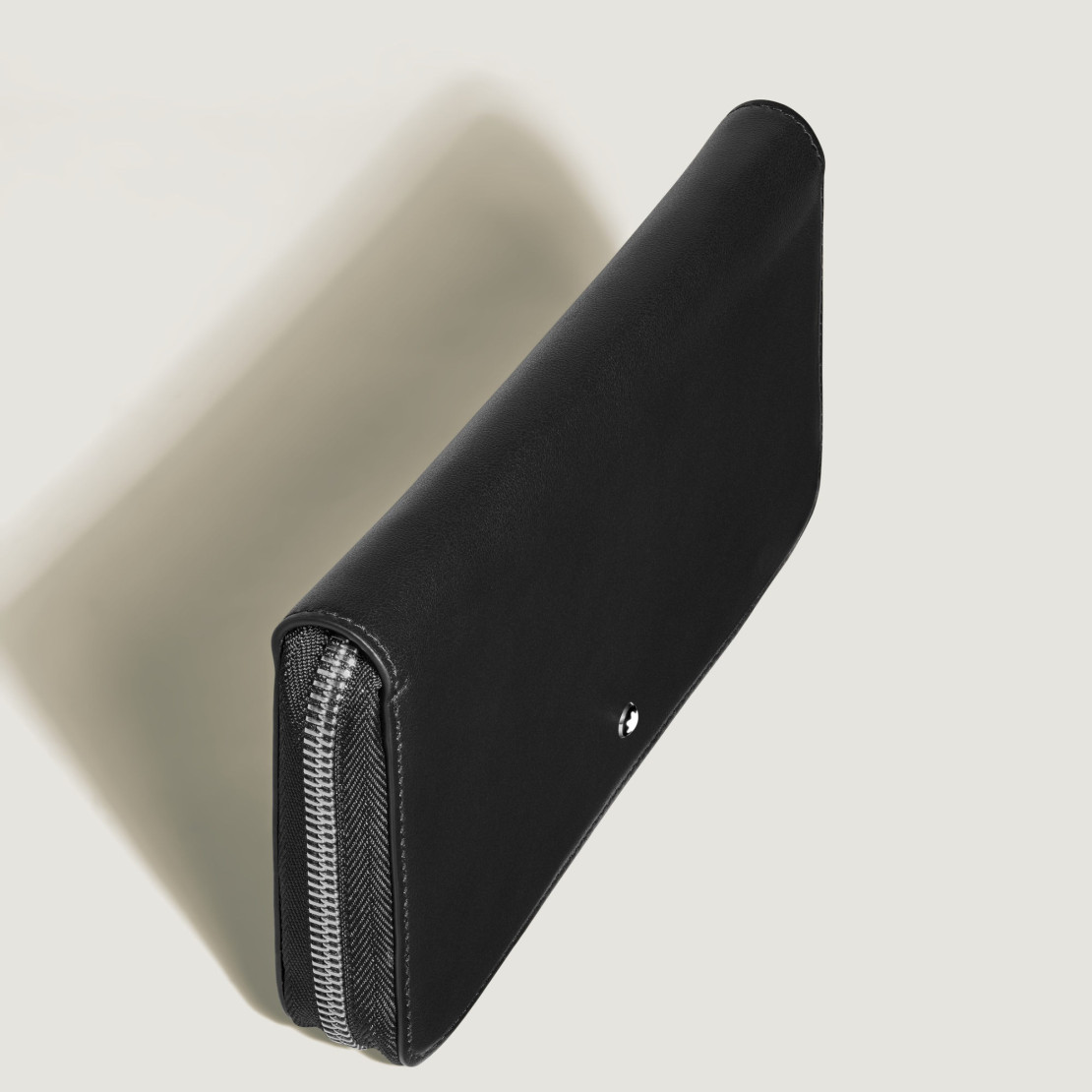 Ref. MB220330 - Diese Brieftasche vereint elegantes Design mit praktischer Funktionalität und ist ein vielseitiger Begleiter für jede Gelegenheit. Dieses aus hochwertigem, weichem Kalbsleder in Schwarz gefertigte Accessoire besticht durch seine klare, rechteckige Silhouette und strahlt Eleganz aus. Ein von einer Feder inspirierter Reißverschlussschieber gibt beim Öffnen den Blick frei auf drei Geldscheinfächer, ein Münzfach mit Reißverschluss, drei Fächer für kleinere Utensilien und Schlitze für bis zu 12 Kreditkarten, die für mühelose Organisation und raffinierten Stil sorgen.Das Wichtigste