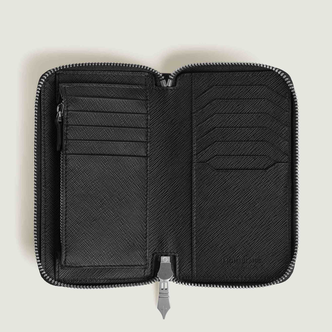 Ref. MB220362 - Diese funktionale Brieftasche mit umlaufendem Reißverschluss vereint zeitloses Design mit praktischer Funktionalität. Sie ist aus geprägtem, modisch verarbeitetem Leder in einer eleganten Kombination aus Blau und Schwarz gefertigt und verfügt über einen markanten Reißverschlussschieber aus Metall in Form einer Feder, der eine Hommage an die Schreibkunst von Montblanc darstellt. Im Inneren bietet die Brieftasche 12 Kreditkartenschlitze, ein sicheres Münzfach mit Reißverschluss und drei zusätzliche Fächer für Belege oder andere wichtige Dinge.Das Wichtigste
