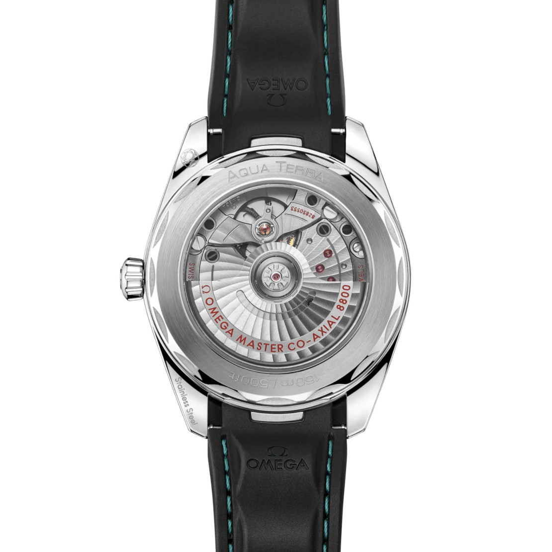 Das integrierte Kautschukarmband in Schwarz mit türkisfarbenen Nähten und einer Faltschließe gewährleistet den Tragekomfort am Handgelenk. Das Innere dieser Uhr wird von dem OMEGA Co-Axial Master Chronometer Kaliber 8800 angetrieben, das vom Eidgenössischen Institut für Metrologie (METAS) nach den höchsten Standards der Branche zertifiziert wurde.