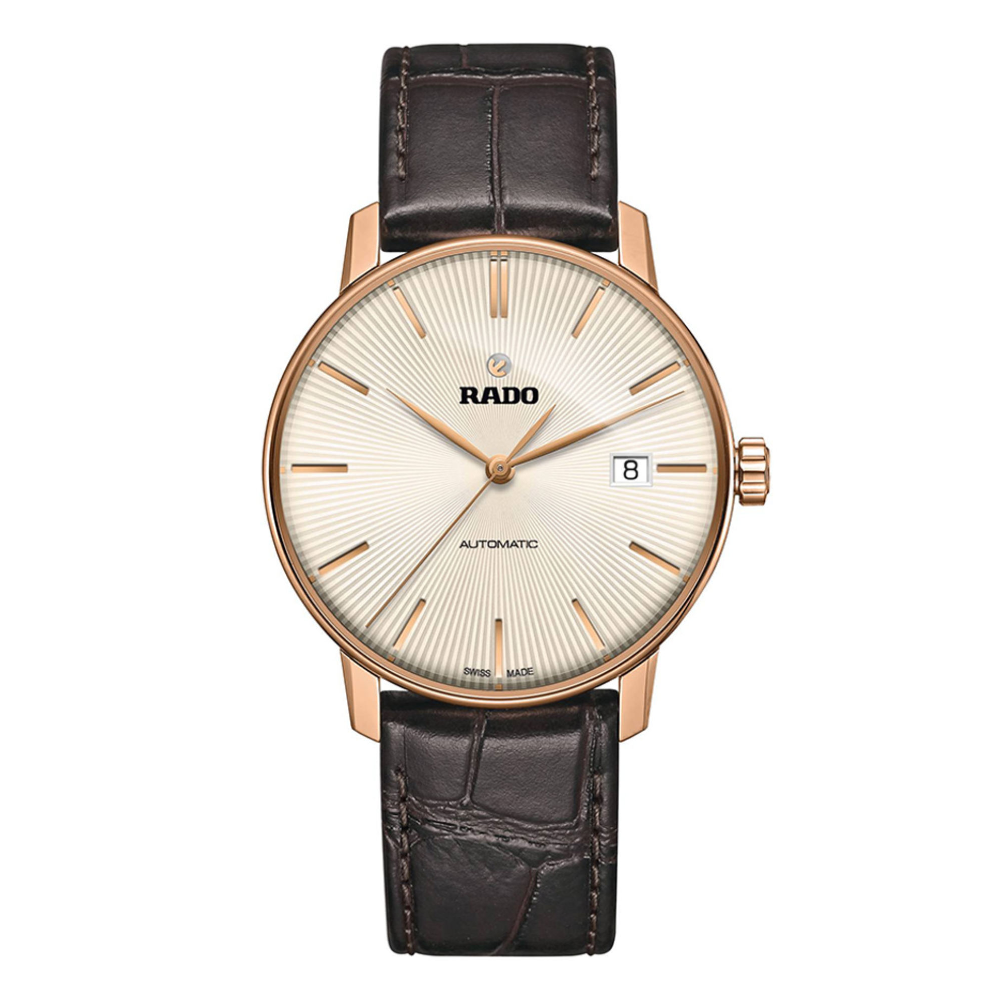Ref. R22861115 - Coupole Classic - Eine moderne Uhr mit besonderer Vintage-Anmutung - In Anlehnung an die Rado Uhren aus den 60er Jahren vereint die Coupole Classic Vintage-Design mit modernem Know-how. Sie ist aus Edelstahl gefertigt und verfügt über ein beidseitig entspiegeltes Saphirglas. Bei einigen Modellen bestehen die mittleren Armbandglieder aus schwarzer Hightech-Keramik oder warmem metallischem Ceramos™, einem unverwechselbaren Akzent von Rado.Das Wichtigste