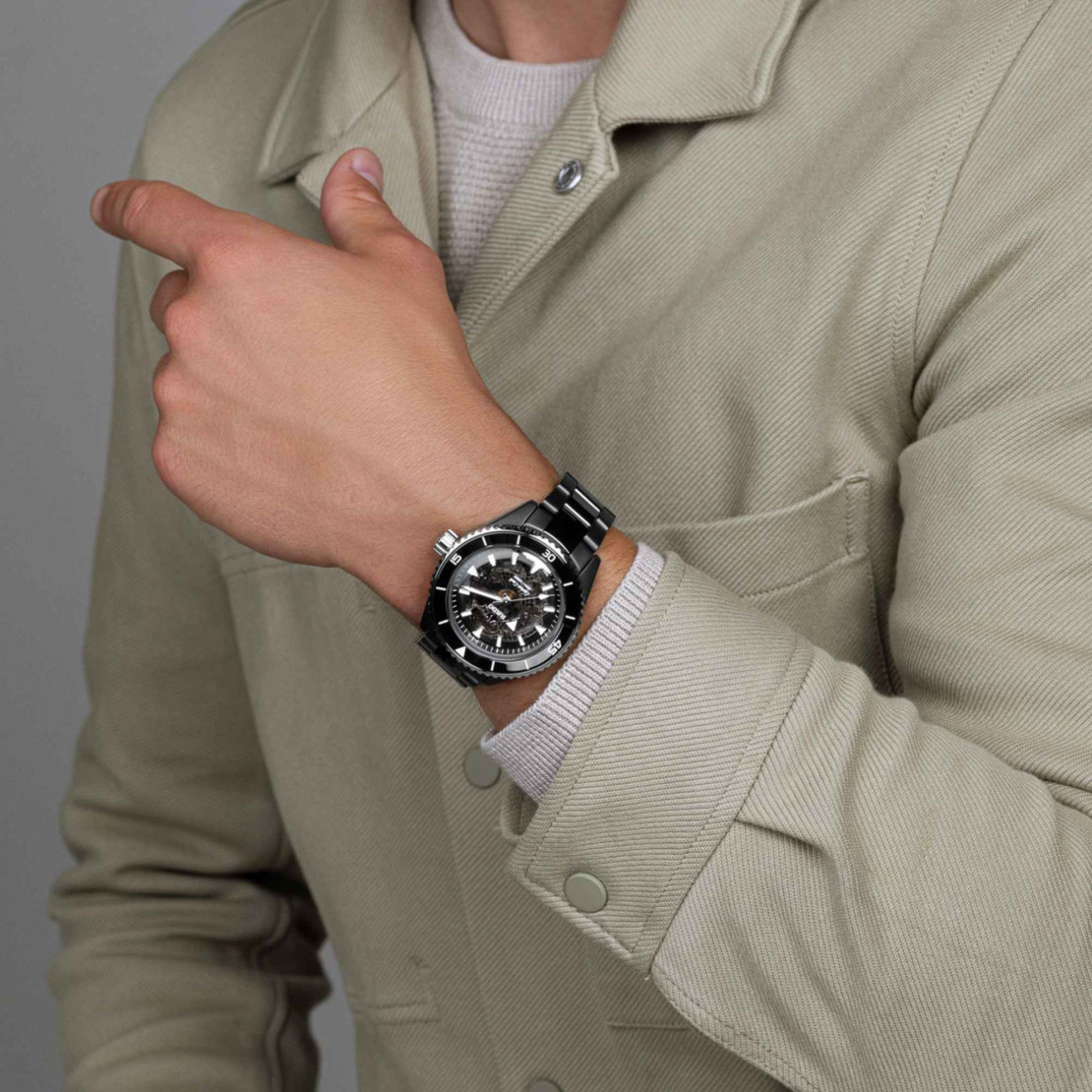 Ref. R32127152 - 2021: ein Jahr der Hoffnung und der Neuerfindung – genau der richtige Zeitpunkt, um einen beispiellosen Zeitmesser zu präsentieren, der revolutionieren will. Die Captain Cook Hightech Ceramic ist der krönende Abschluss langjähriger Entwicklung und Forschung, in Verbindung mit der Geschichte und Tradition der Rado Captain Cook. Die Weiterentwicklung der Captain Cook Kollektion aus Hightech-Keramik ist Rados DNA in ihrer reinsten Form. So zeichnet sich die Kollektion durch Modelle aus, die über ein paar der herausragendsten Leistungsmerkmale der Marke verfügen – darunter Rados innovative Monobloc-Gehäusekonstruktion aus kratzfester und hypoallergener Hightech-Keramik sowie ein Rado Uhrwerk vom Kaliber R734 mit Nivachron™ Spiralfeder. Die innovative Nivachron™ Spiralfeder schützt den Zeitmesser vor Magnetfeldern und bietet damit einen Vorteil im Alltag.