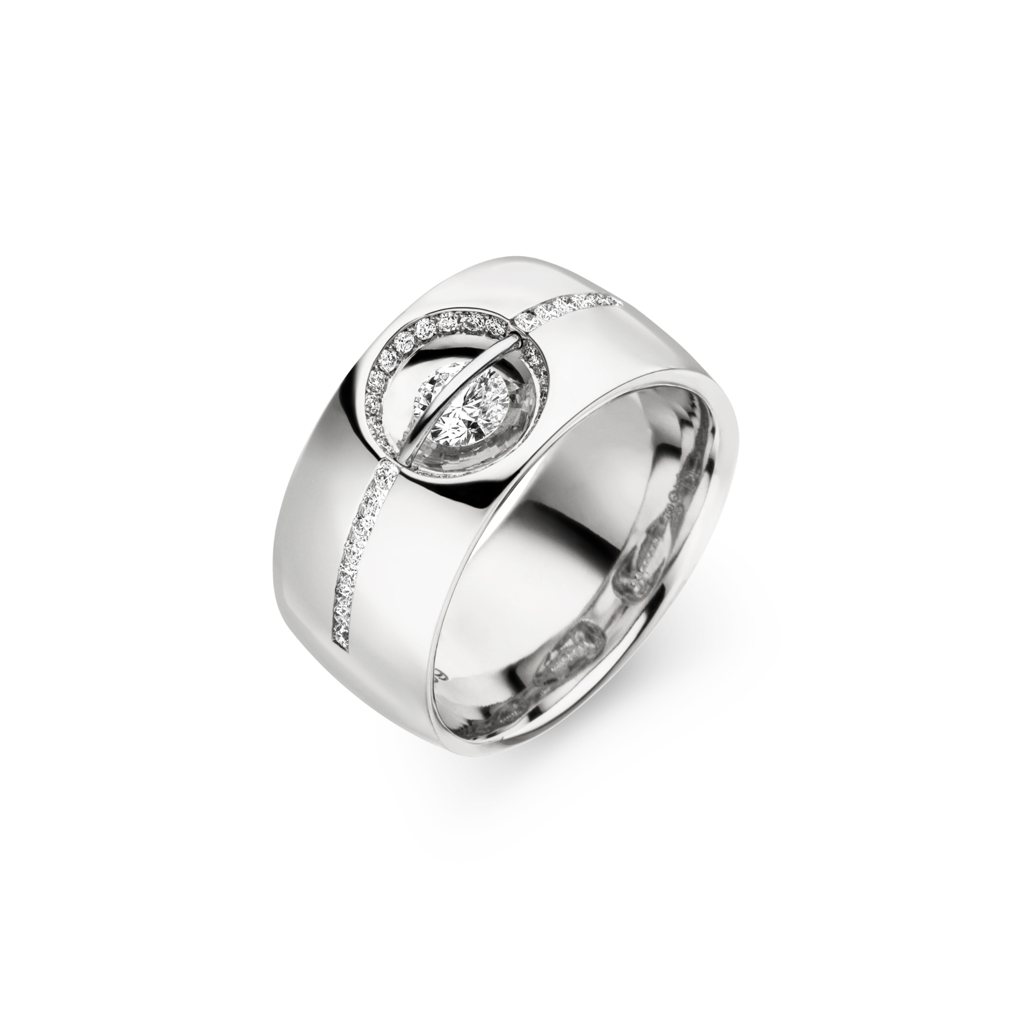 Ref. 218_L1064_030_WW - Mit dem Liberté® hat Schaffrath 2002 eine absolute Weltneuheit präsentiert und so ziemlich alle Kriterien des bis dato technisch Möglichen in der Diamantschmuckherstellung auf den Kopf gestellt. Während der Diamant in harkömmlichen Fassungen fest verankert ist, verleiht das patentierte Liberté®-Fassungssystem dem Stein eine vollkommene Bewegungsfreiheit von 360°. Mit atemberaubendem Ergebnis: Jede noch so kleine Bewegung verändert die Position des Diamanten und lässt ihn im Licht tanzen. Gleich einem funkelnden Feuerwerk wird das Licht von den unzähligen Facetten des Steins zurückgeworfen und strahlt so in allen Spektralfarben und in alle Richtungen. Mehr als 1000 Stunden Entwicklungszeit hat es gebraucht, um das Kunstwerk Liberté® zur Vollendung zu bringen.Das Wichtigste