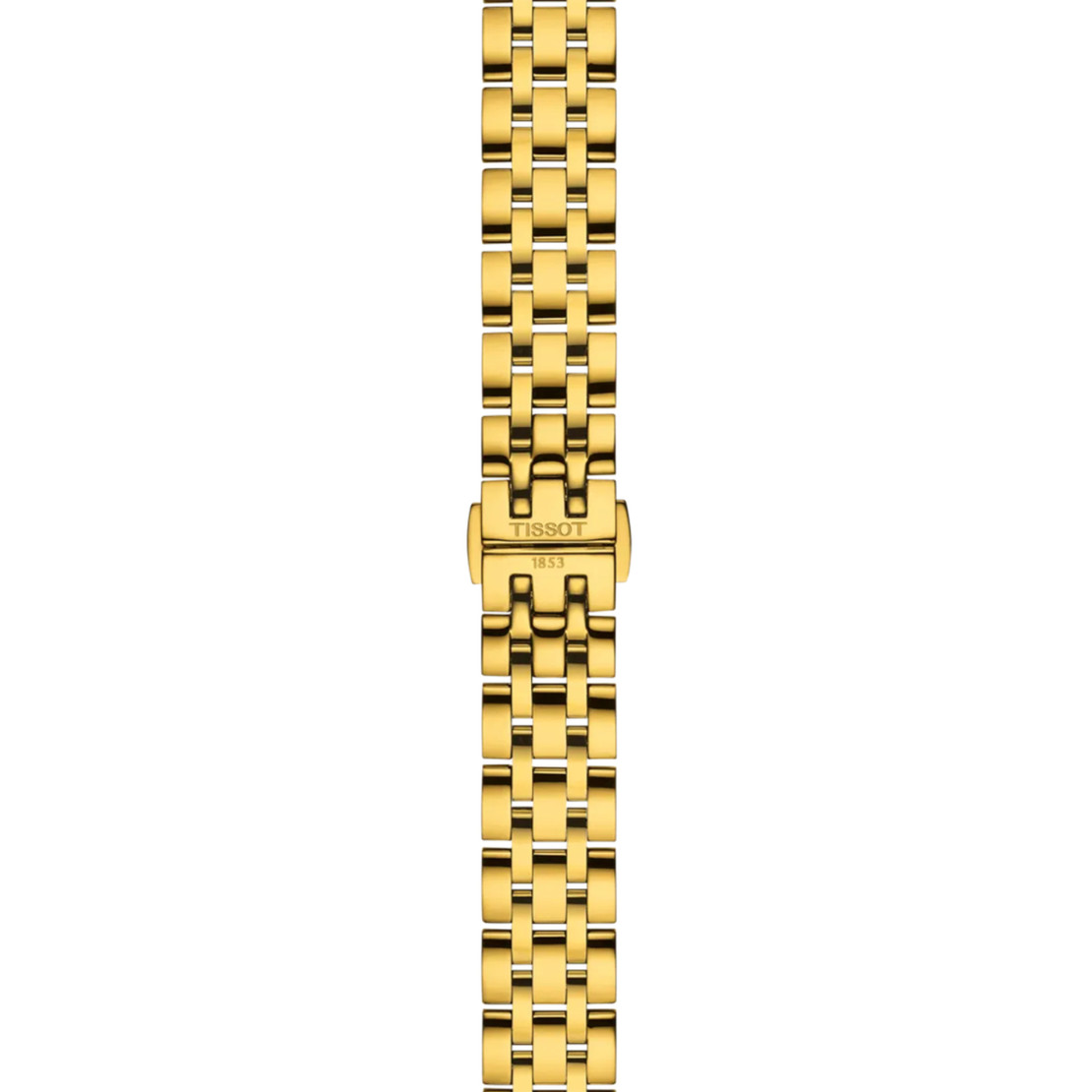 Dieses Damenmodell verfügt über ein 316L-Edelstahlgehäuse mit gelbgoldfarbener PVD-Beschichtung und ein elfenbeinfarbenes Zifferblatt, welches von einem kratzfestem Saphirglas geschützt wird. Das massive 316L-Edelstahlarmband mit gelbgoldfarbener PVD-Beschichtung besitzt eine Butterfly-Schließe mit Drückern.