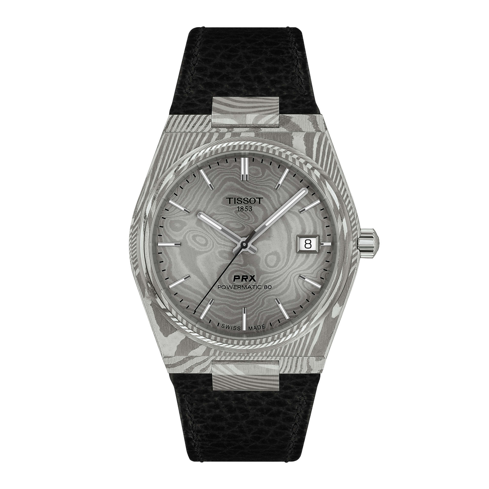 Ref. T137.807.96.081.00 - Eine Ikone, wiedergeboren aus modernstem Material: marmorierter Damaszener-Edelstahl. Wenn Sie auf der Suche nach einer einzigartigen Uhr mit authentischem 70er-Jahre-Feeling sind, dann ist diese Tissot PRX 38mm genau das Richtige für Sie.Das Wichtigste